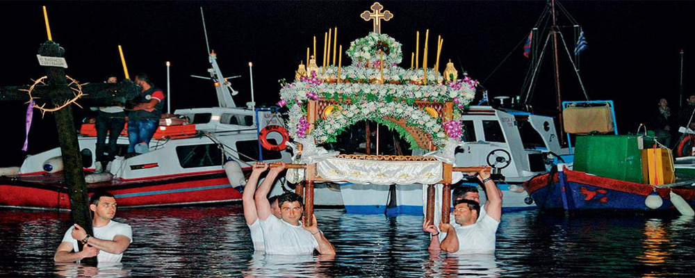 The remake of a naval battle in the port of Hydra with the “bourlotto” (trapped ship full of dynamite that is set on fire) followed by great fireworks make this captivating spectacle at night on the port an unforgettable event.