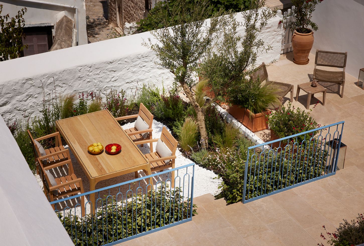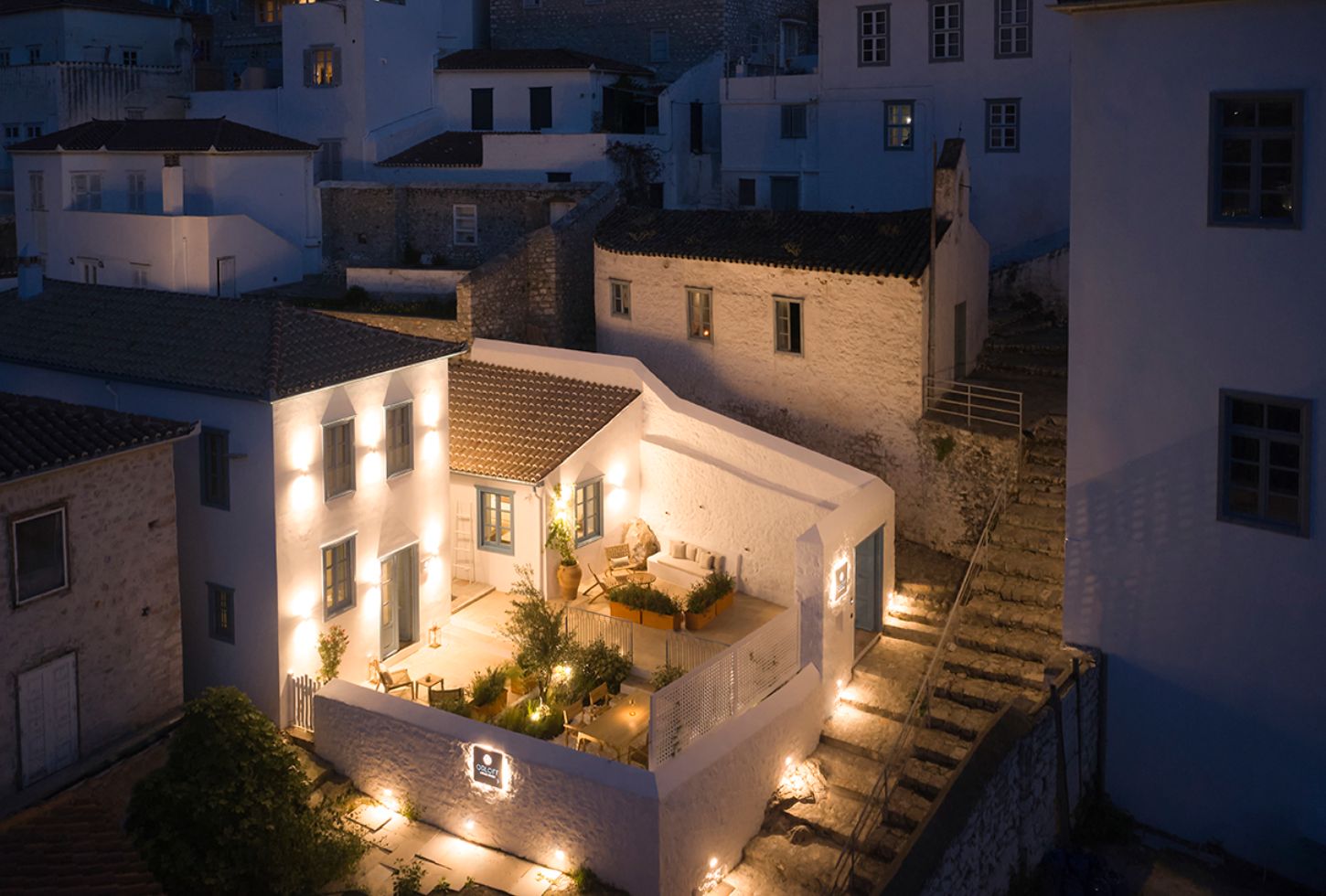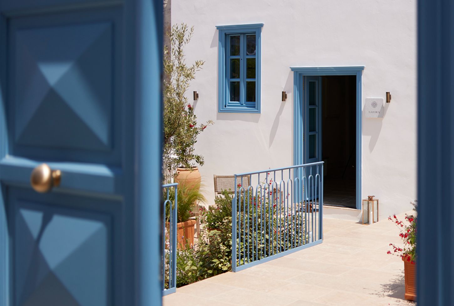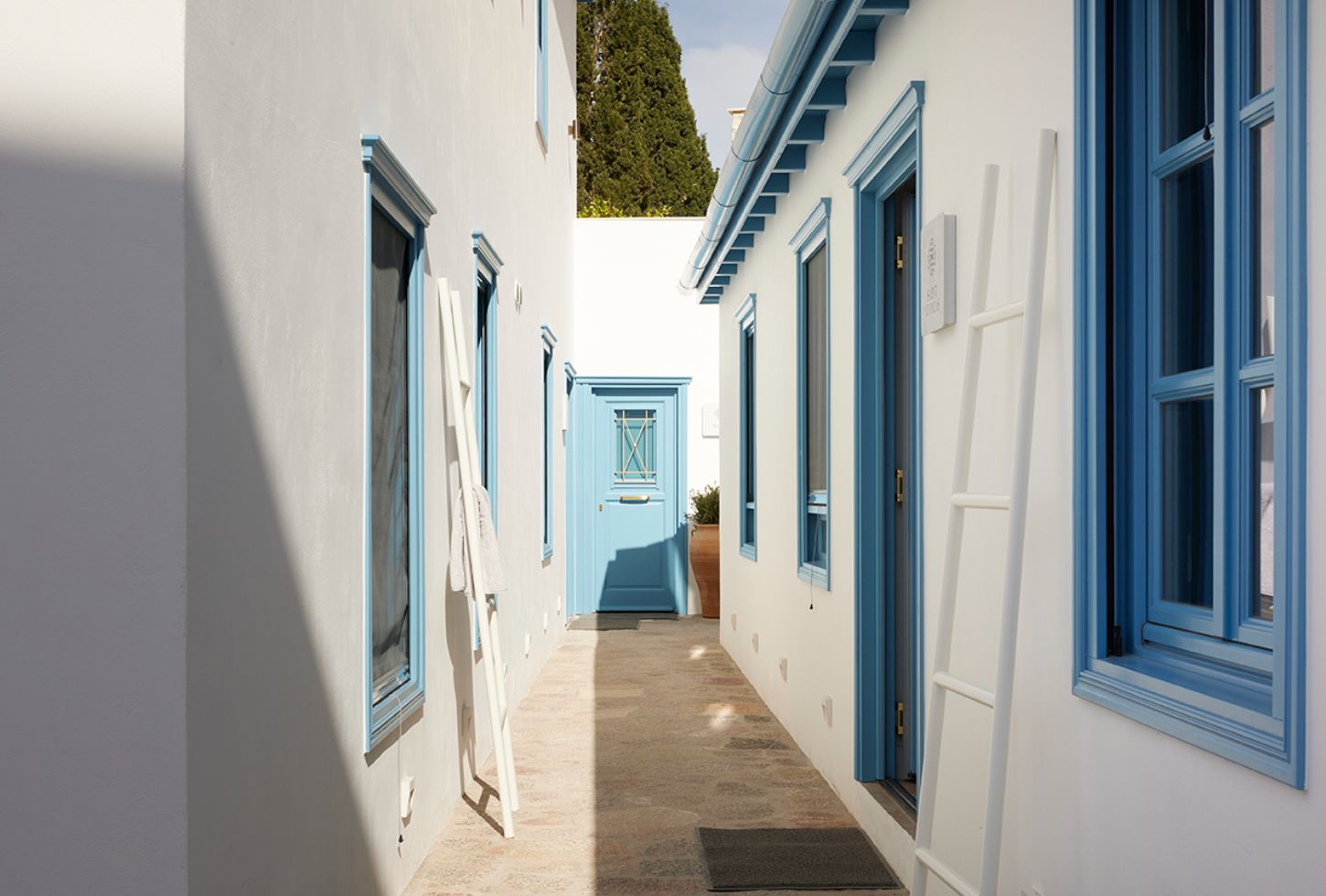 Rehabilitation has been made in full respect to historical Hydra standards, under the authority of the Byzantine archeology commission. The selection of noble materials such as Venetian stones, red Eretria marble, oak wood for the building, the respect of the Orloff color pallet especially on the blue windows, the use of fine fabrics enhancing the life on a Greek island, create a refined environment devoted to the well-being of the guest, while paying tribute to the unique character of Hydra, an island marked by history and authenticity.
